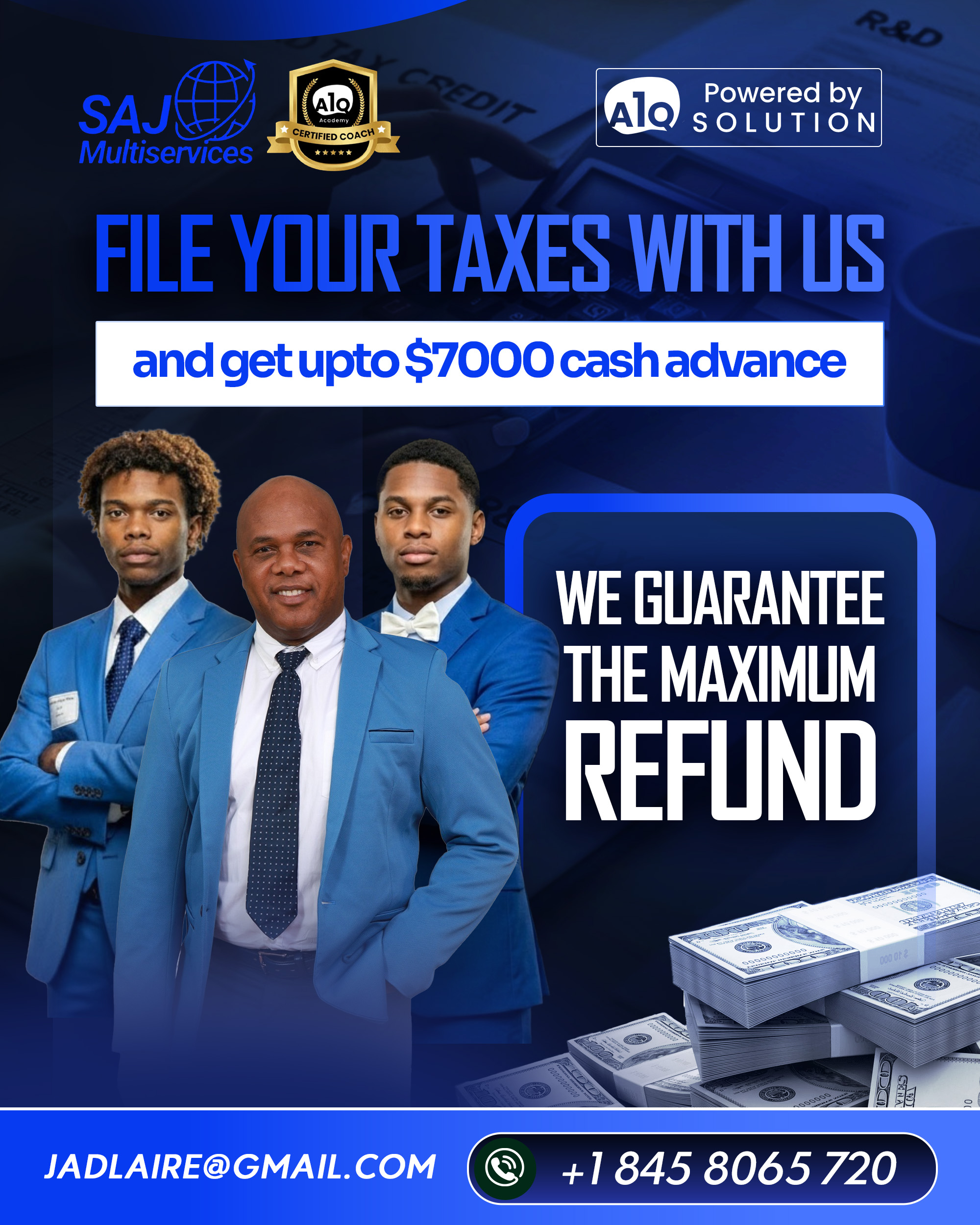 Thank you for choosing SAJ MULTISERVICES for your tax filing needs! We’re excited to serve you. Please complete the intake form as thoroughly as possible. If you have any questions or need assistance, feel free to email us at [email protected] or call +1 845 8065 720.